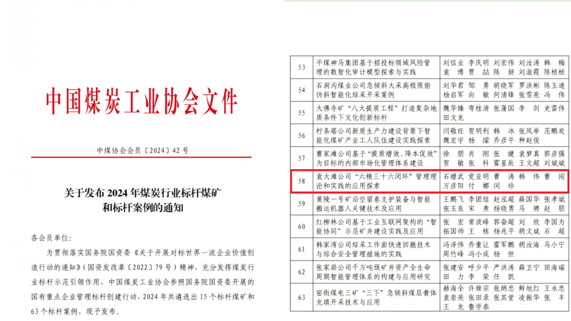中能袁大灘煤礦“六精三十六閉環(huán)管理理論和實(shí)踐的應(yīng)用探索”被評(píng)為“2024年煤炭行業(yè)標(biāo)桿案例”