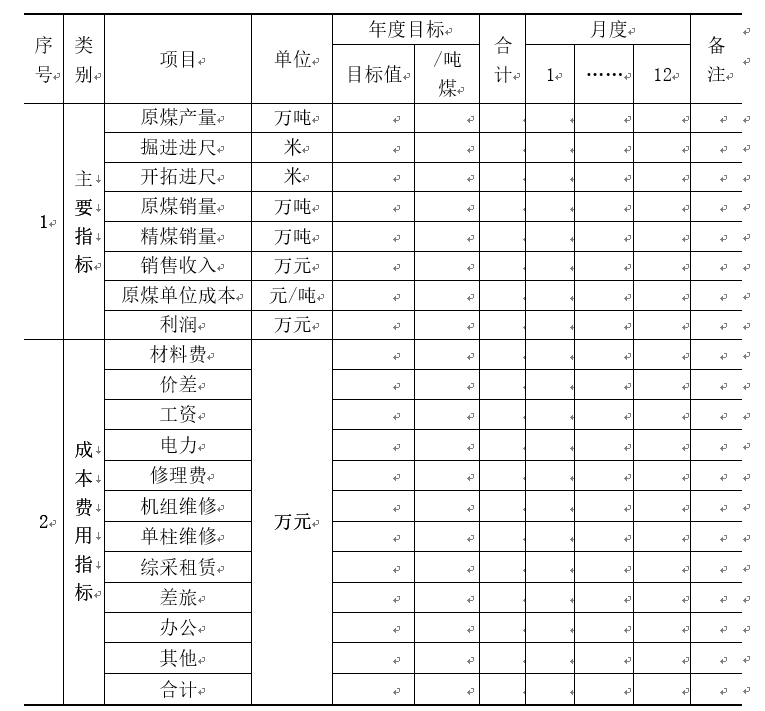 表1 董礦分公司全面預(yù)算管理預(yù)算表(樣表)