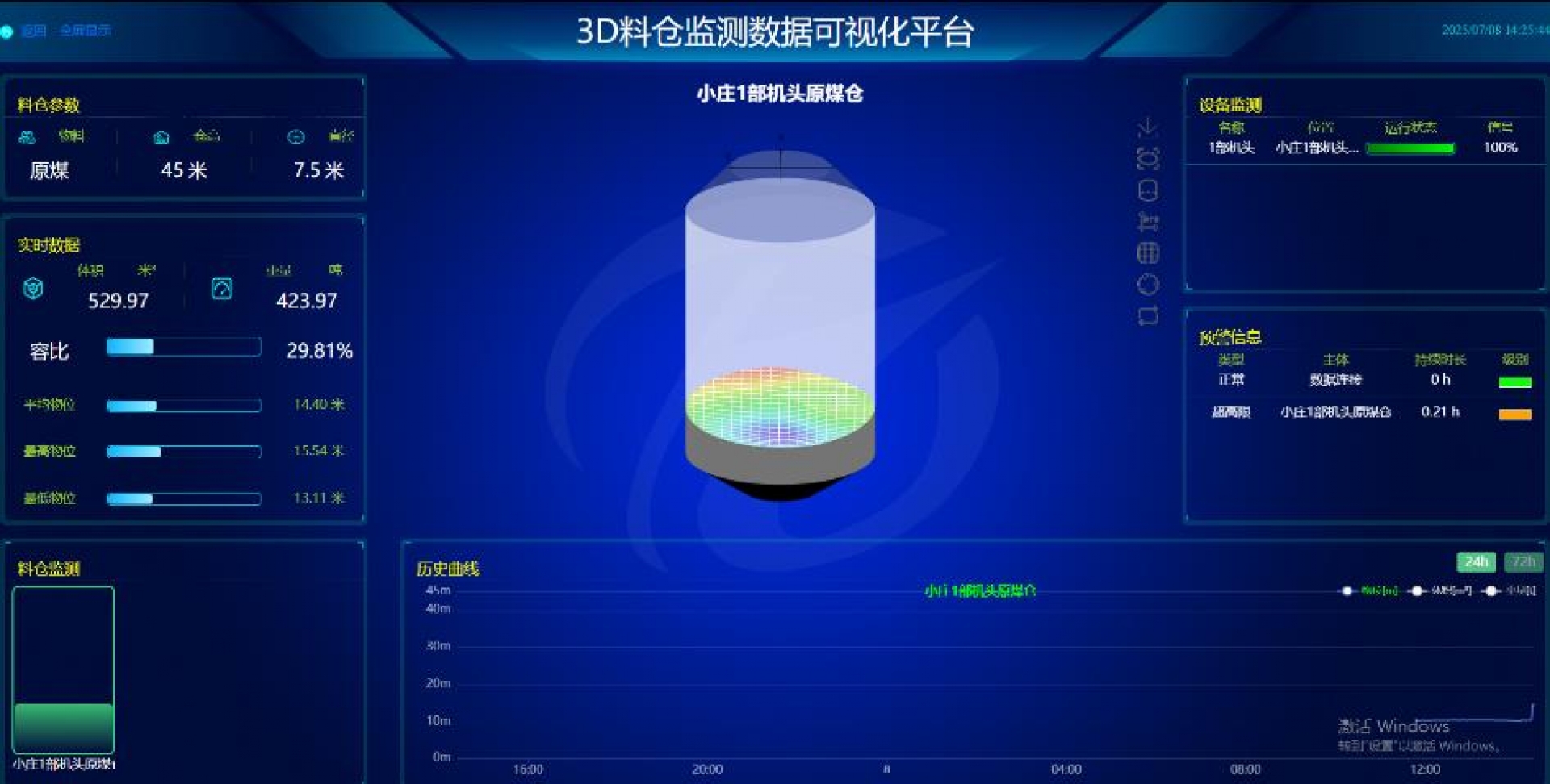 近日,彬長礦業小莊礦自主搭建的“3D煤倉監測數據可視化平臺”正式投用,標志著該礦煤倉信息監管全面進入可視化、智能化新階段。這套創新系統的核心由礦用本安型雷達物位...
