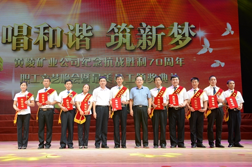 華燈初上,舞樂翩翩。8月25日,在開場(chǎng)舞《盛世歡歌》曼妙的舞姿、絢爛的色彩中,鋪展開一幅喜慶收獲、和諧歡樂的動(dòng)人畫卷。黃陵礦業(yè)公司舉辦紀(jì)念抗戰(zhàn)勝利70周年職工文藝晚會(huì)暨最美員工頒獎(jiǎng)典禮在文體中心拉開帷幕。陜煤化集團(tuán)黨委副書記、工會(huì)主席馬富元,總經(jīng)理助理、機(jī)關(guān)黨委書記、黨群工作部部長(zhǎng)夏迎廣,工會(huì)負(fù)責(zé)人李向東,黃陵礦業(yè)公司領(lǐng)導(dǎo)及各基層單位的1700多名員工歡聚一堂,共慶盛會(huì)。