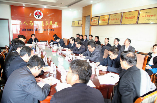 銅川礦業公司執行董事、總經理王蓬就該公司自2014年年底以來,落實國家化解產能號召,按照陜煤化集團調整收縮關中老礦區戰略,在壓縮產能、轉型發展、外出承攬工程、職工分流安置等方面所采取的舉措、推進的工作進行了匯報,重點匯報了銅川礦業公司東區三礦關閉情況,特別對當前銅川礦業公司在化解過剩產能,破解難題、應對困境、轉型升級、二次創業中遇到的困難和問題,采取的應對措施及需要上級支持幫助的事項進行了匯報。