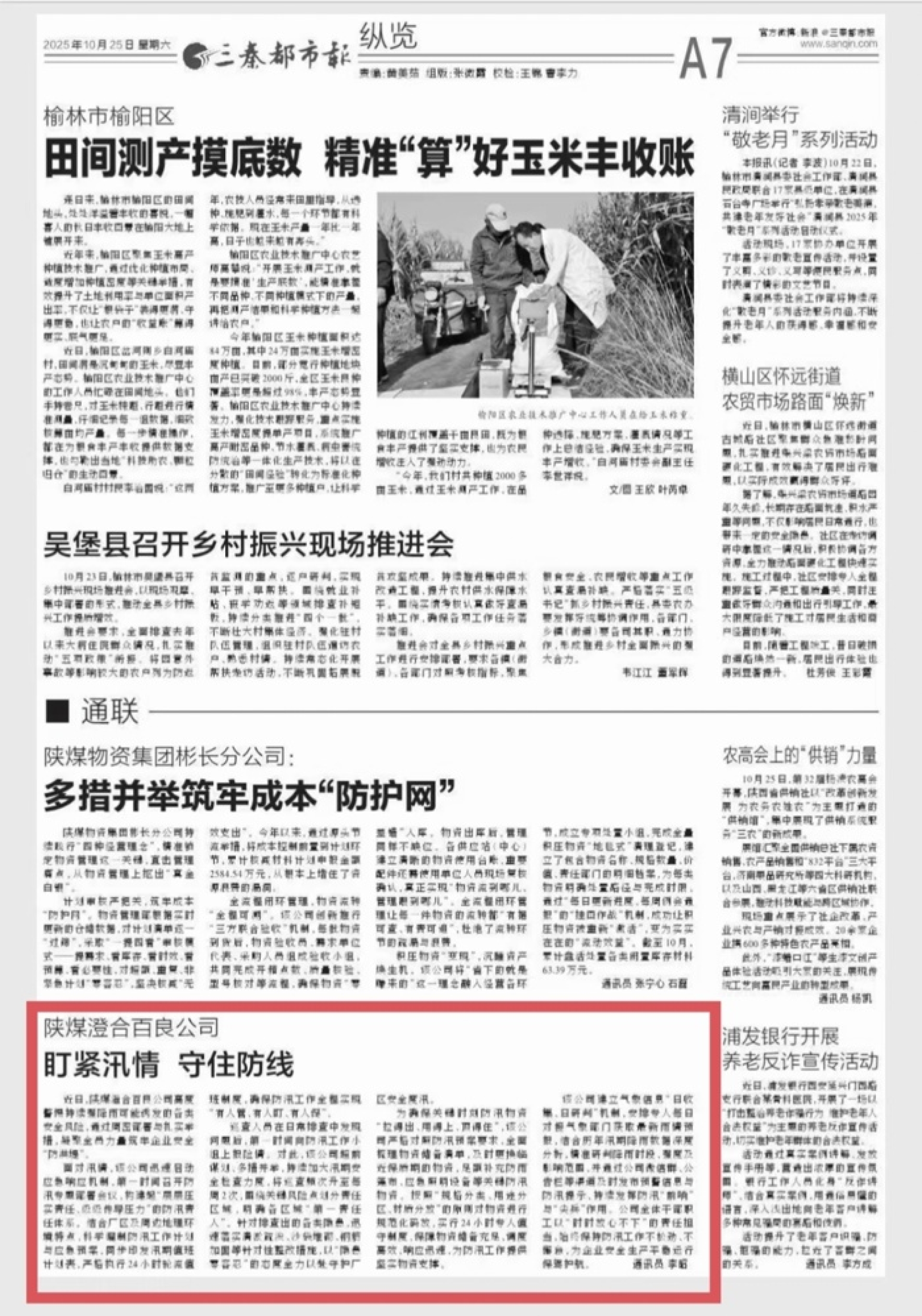 三秦都市報|澄合礦業百良公司:盯緊汛情 守住防線