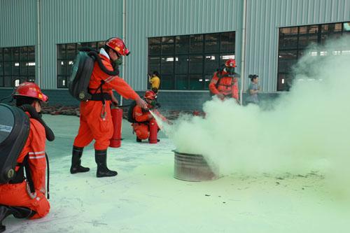 神南產(chǎn)業(yè)發(fā)展有限公司舉行火災(zāi)事故應(yīng)急救援演練 “不好了!油脂著火了,趕快向...