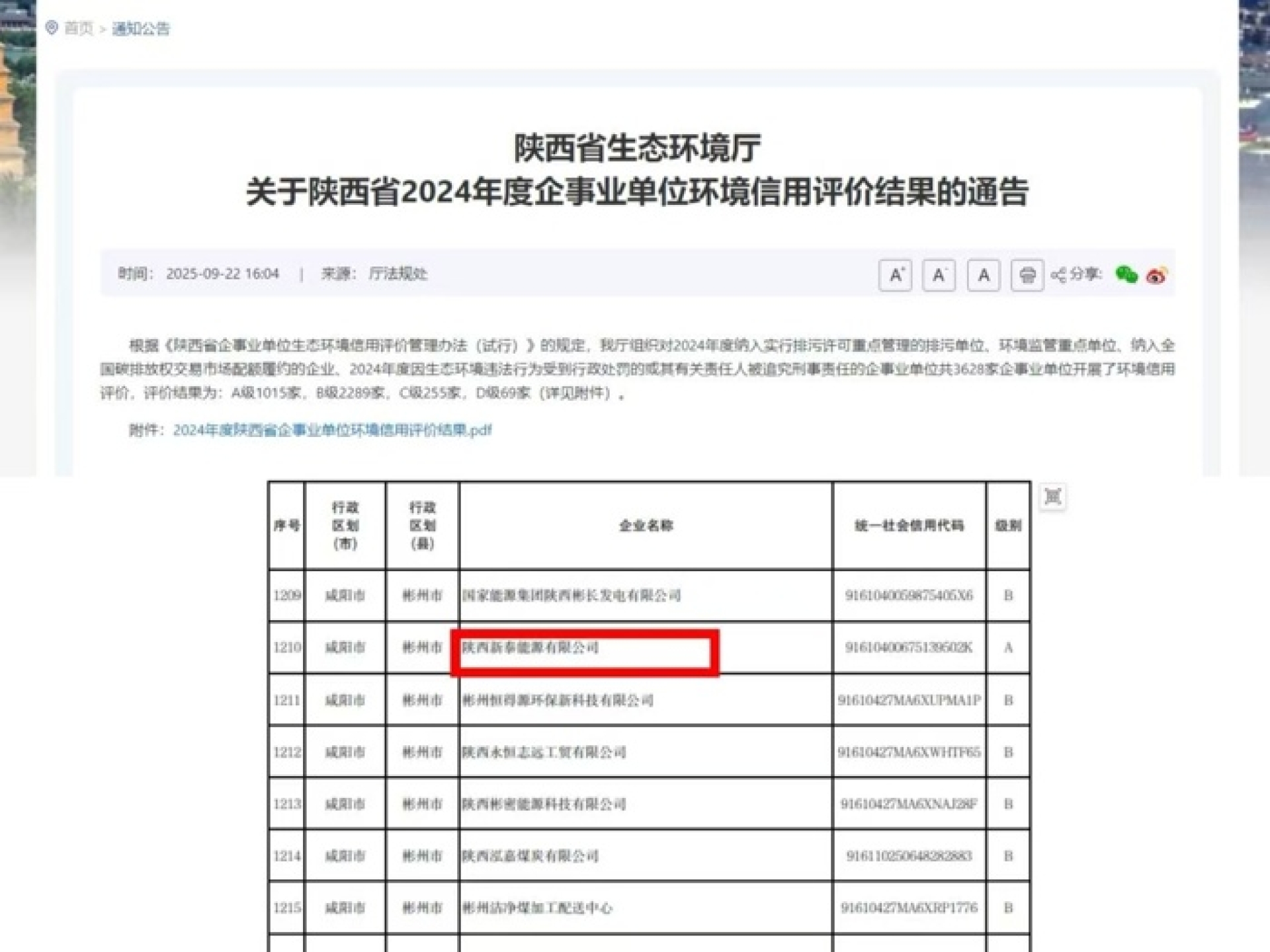 陜西省煤層氣新泰能源公司榮獲陜西省2024年度環(huán)境信用評(píng)價(jià)A級(jí)權(quán)威認(rèn)可